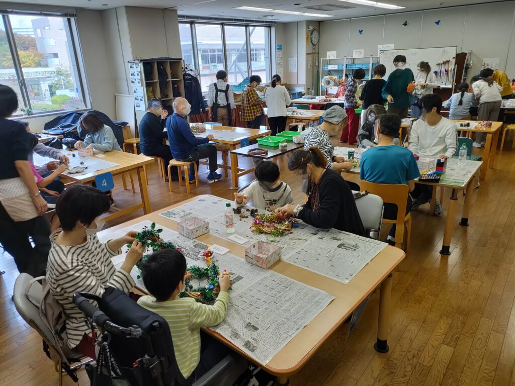 クリスマスは12月ですが、12月に入ると材料の入手が難しくなってくるため、少し先取りしての開催です。図工の時間は小学生以上の方を対象としているため、今回もお子さんから大人まで、様々な年代の方がご参加くださいました。