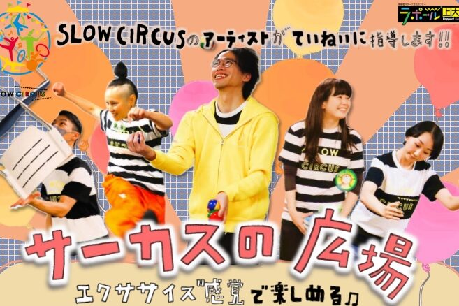 SLOW CIRCUSのアーティストとソーシャルサーカスで使われるジャグリングなどのサーカス道具の使い方や、からだをつかった表現を体験します。みんなで一緒に楽しくサーカスの技を練習しましょう!毎回、前半は1つの道具やテーマに絞って練習し、後半はいろんな道具を自由に練習できる時間を設けます。