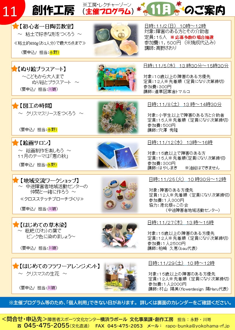 11月も創作工房でさまざまな活動を楽しみましょう!