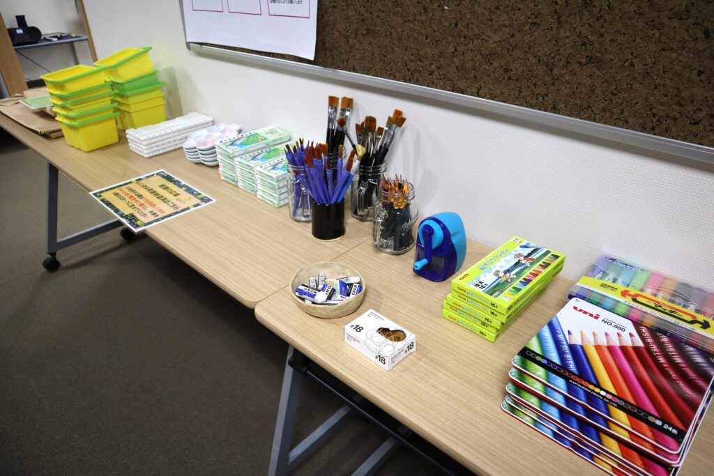 画材道具(画用紙、水彩絵の具、筆、パレット、筆洗器、色鉛筆、クレヨン、油性ペンなど)はレンタル出来るので、手ぶらでの参加も可能です。