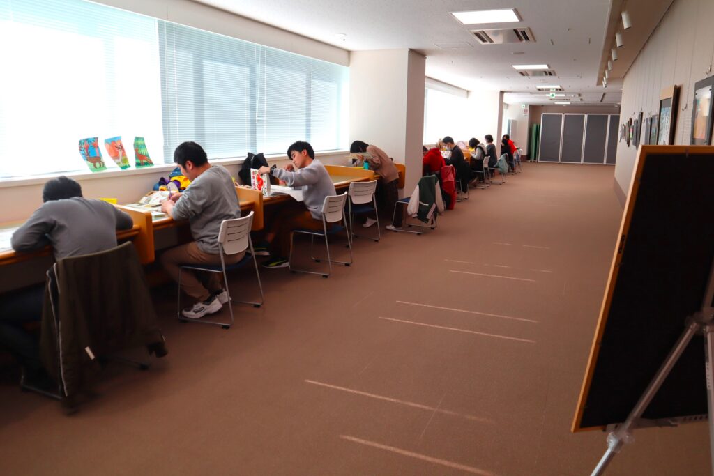 創作エリアと多目的室の両方の広いスペースのどこでも好きな場所に座って、自分のペースで2時間集中して取り組めます。
