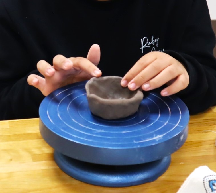 冬コースは、夏コースと同じ手回しろくろを使って、粘土のかたまりから形をつくる「ろくろコース」です。